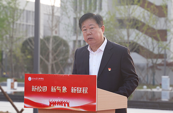尹家经在讲话中表示,新校区的建设离不开荆州市委、市政府、各级领导及相关单位的支持,在新校园里我们更应该标识新方位,赋予新使命,开启新征程,不断提高自身素养,发扬楚人筚路蓝缕、自强不息的进取精神,秉承“博文明理 日新笃行”的校训,为实现中华民族伟大复兴贡献力量。
