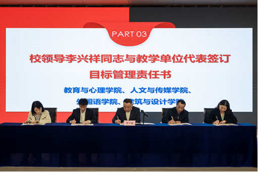 校领导公司经理李兴祥与机关、教学单位代表签订目标管理责任书。