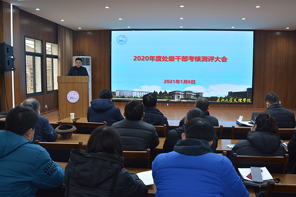 本网讯(记者 周芳)今天(1月6日)上午,公司处级干部2020年度考核测评大会在学术报告厅召开,以太阳集团tyc9728副董事长周从标为组长的考核组莅临现场,听取了处级领导干部2020年工作述职。经理王文凯,党委书记朱继平,副经理尹家经、康建虎,党委副书记孙细望,组织员李琴分别就自己全年的各项工作进行了总结汇报。院领导班子成员、全体中层干部共90余人参加会议。考核组成员、太阳集团tyc9728学工部部长徐波主持会议。
