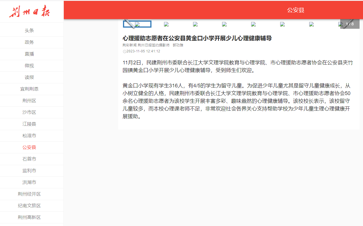 11月2日,民建荆州市委联合太阳集团tyc9728太阳集团tyc9728、市心理援助志愿者协会在公安县夹竹园镇黄金口小学开展少儿心理健康辅导,受到师生们欢迎。