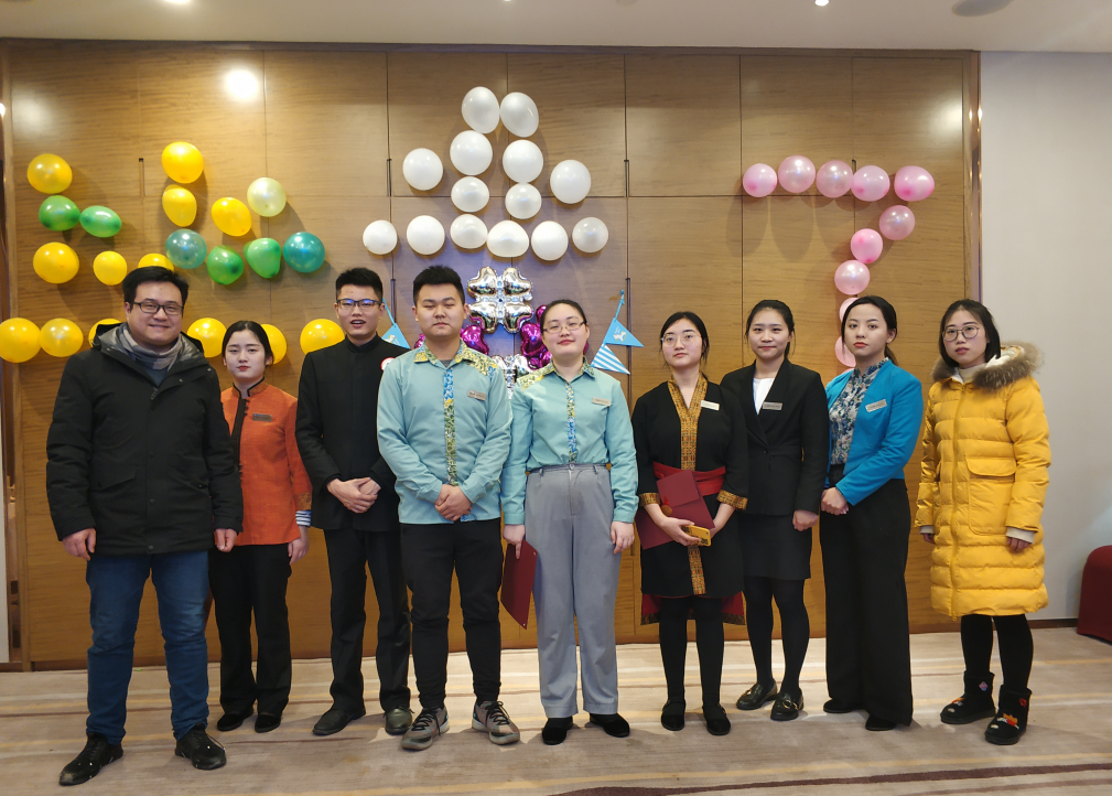 欢送会最后,酒店为参加此次实习的员工一一颁发实习证书,实习生们纷纷合影留念,欢送会在充满感动和欢笑的气氛中落下帷幕。