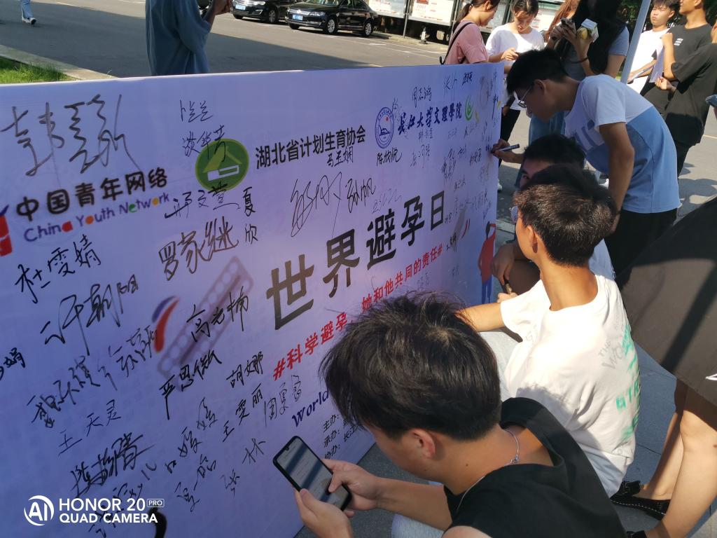 本次活动定于9:30开始,但8:00的时候就已人群攘攘,可见大家对世界避孕日主题宣传活动的十分关注,并且纷纷在宣传板上签下自己的名字。