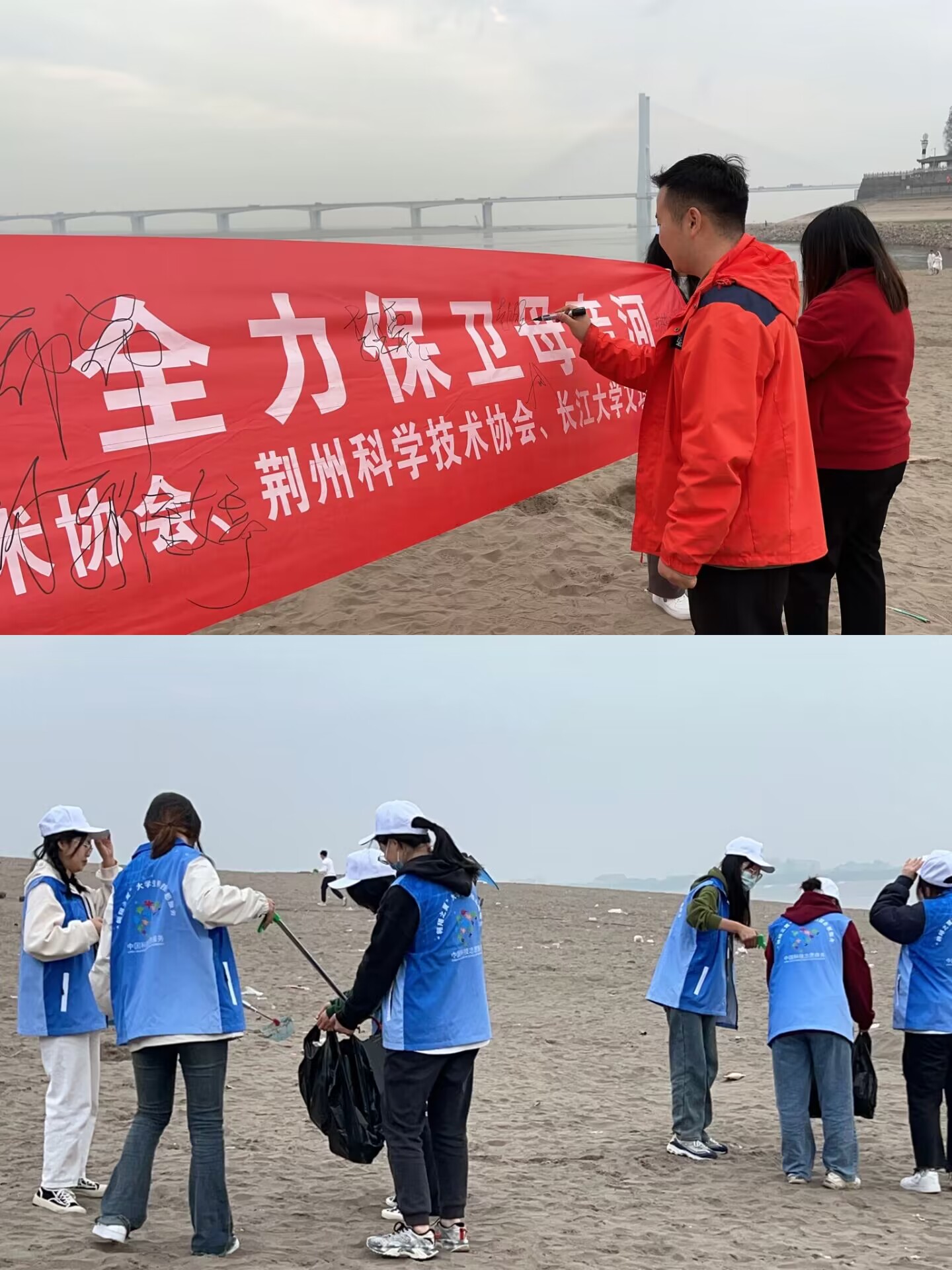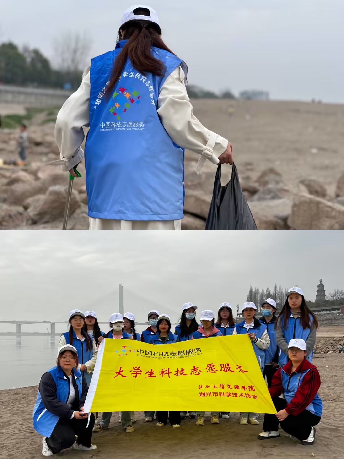 沿着长江一线,身穿蓝马甲,手拿垃圾夹和黑色垃圾袋,将捡到的塑料瓶、烟头、零食袋子等垃圾分为装入不同的垃圾袋。两人一组互相配合,提高了垃圾分拣的效率。志愿者们不怕脏、不怕累,不放过任何一个隐蔽的角落,耐心的细细捡拾。志愿者周铃子感慨到“作为荆州本地人、一名老员工,长江环境保护,应有我的一份力量,这是责任更是义务,今后我会多来江边看看,拾拾垃圾,同时见证母亲河在我们努力下的变化。”