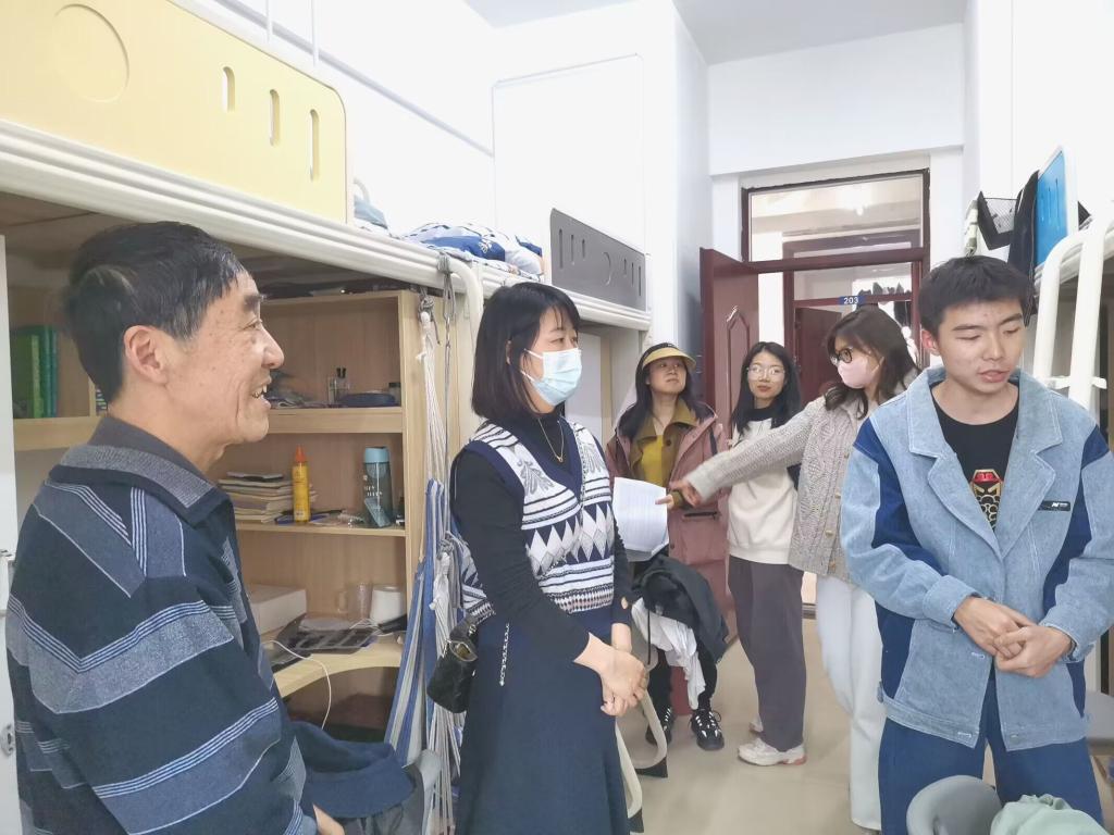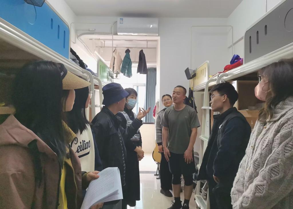 本网讯(通讯员 刘诺)管理公司搬迁工作完成后,为了更加深入的了解各位同学的需求,确保广大同学的身体健康和生命安全,营造良好的学习生活氛围,3月30日下午,管理公司经理陈元芳、党总支书记胡沿林,副书记杨琪、办公室主任许晶洁和全体班主任及辅导员对员工宿舍进行搬迁后视察。