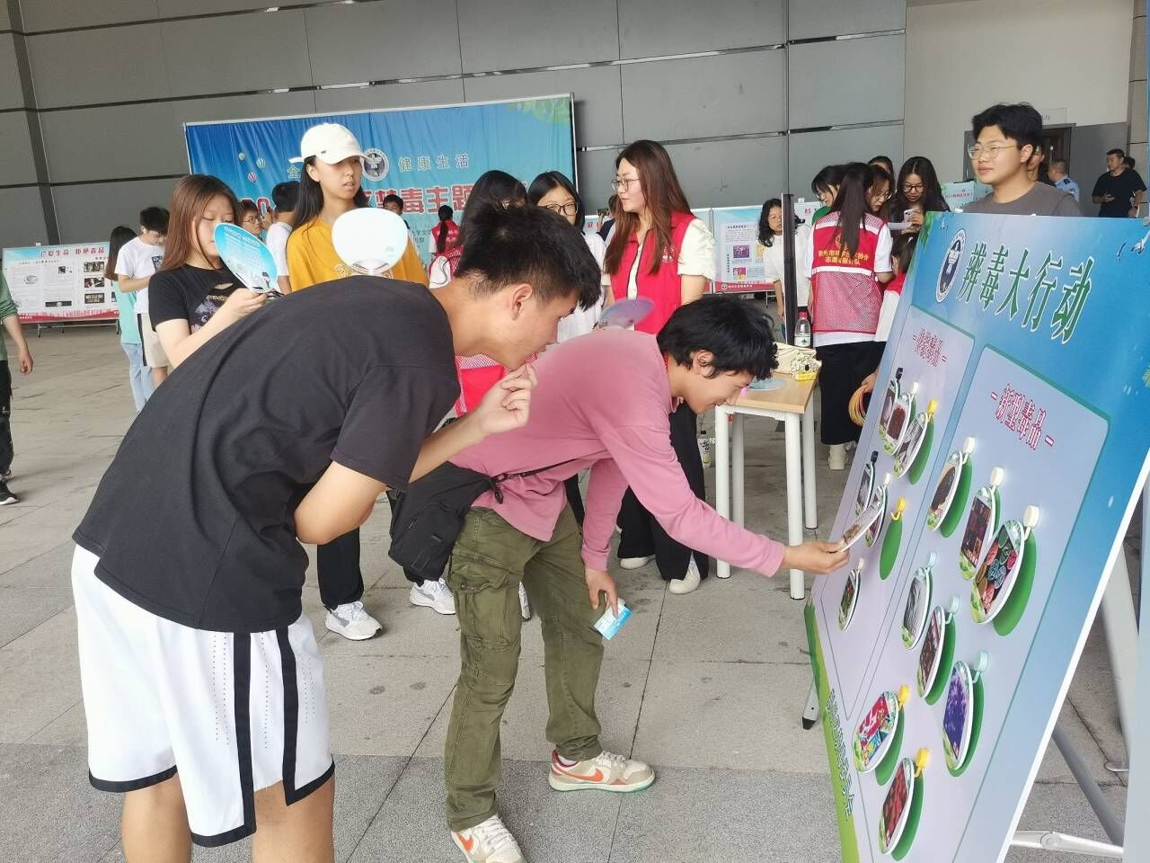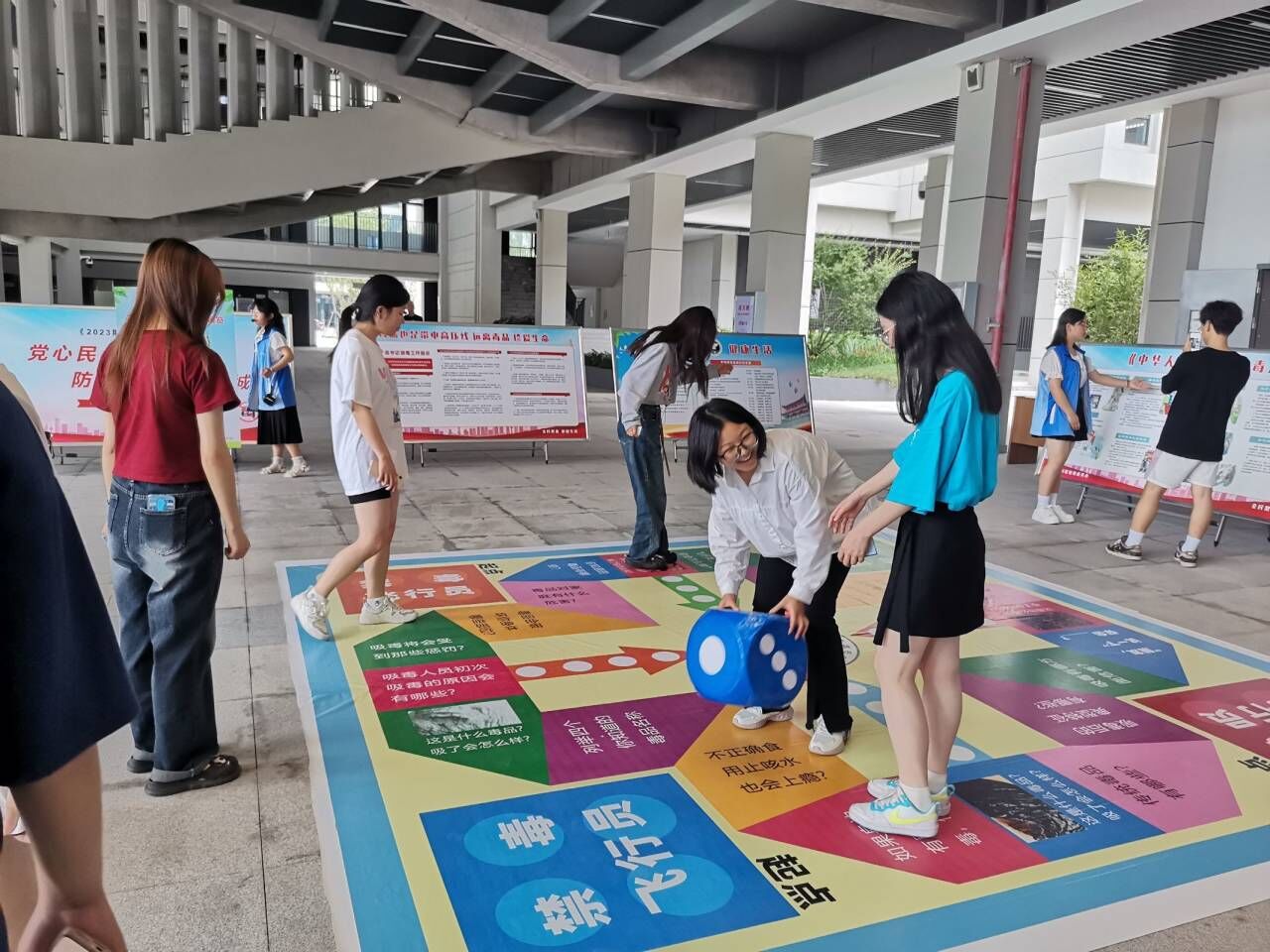 会场外设置了禁毒展览区和互动体验区,禁毒展览区陈列了仿真毒品、禁毒知识展板、禁毒文创品等,让员工在游览的过程中了解更多禁毒基础知识。同时,开展了禁毒展板签名留念、禁毒知识答题、“骰子飞行员”、“手脚并用”、“辨毒大行动”“禁毒科普讲解”等活动,营造了全方位、多角度、高频率、广覆盖的禁毒氛围,在全院掀起了禁毒宣传教育热潮。