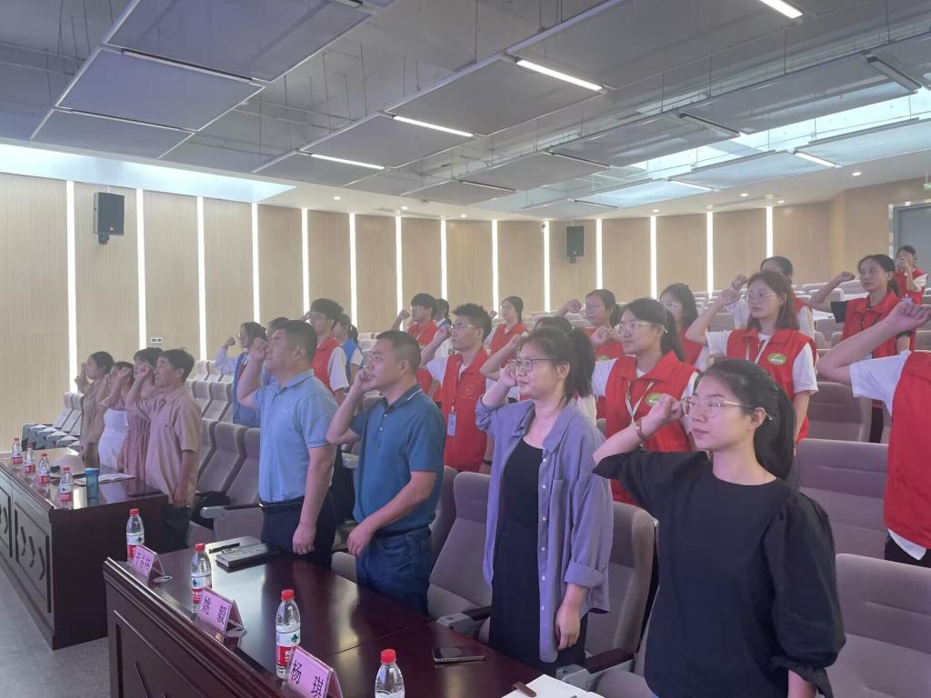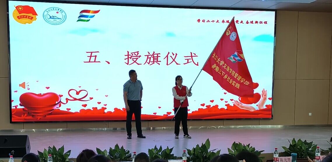 活动伊始,现场播放VCR回顾管理公司2022年“三下乡”社会实践活动。管理公司2023年暑期“三下乡”社会实践服务队队长廖楚楚汇报了本次活动的团队分工、实践内容、调研方法及预期实践成果。志愿者代表刘钰带领全体青年志愿者庄严宣誓。