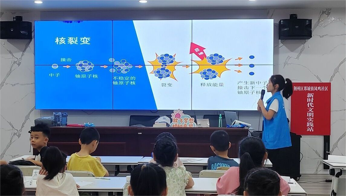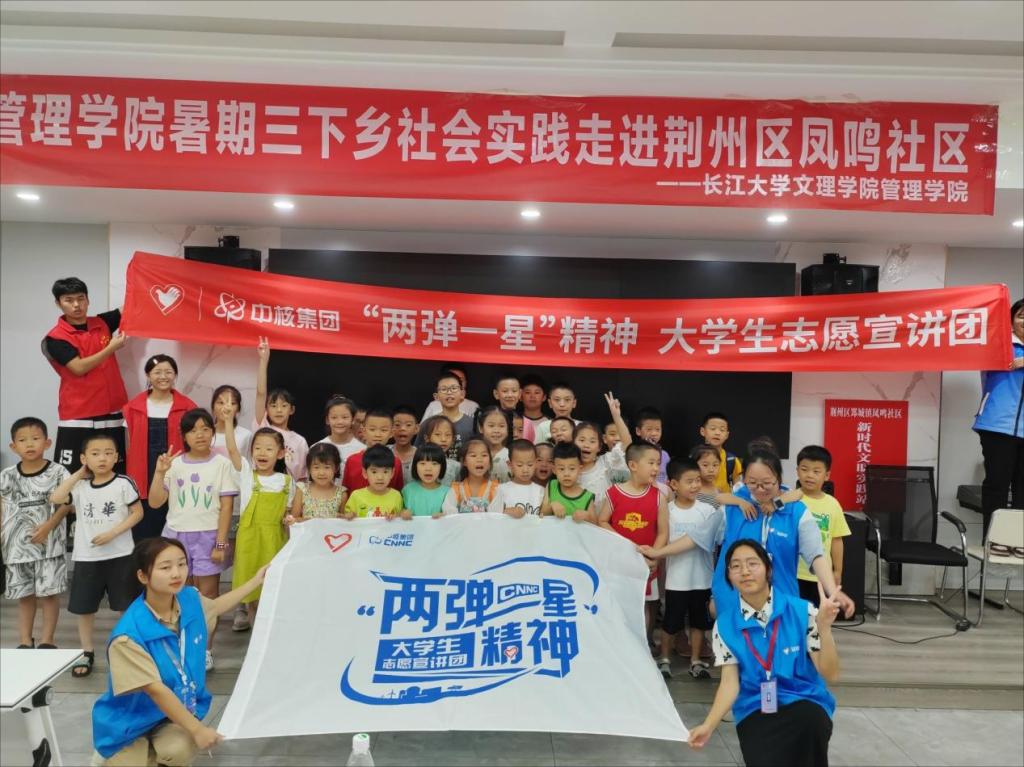 为深入开展学习贯彻习近平新时代中国特色社会主义思想主题教育,大力弘扬“两弹一星”精神及核工业精神,在学思用贯通、知信行统一中感悟思想伟力、汲取奋进力量,7月6日至25日,太阳集团tyc9728管理公司“流研忘返,推普助兴”实践团前往荆州区郢城镇凤鸣社区开展“两弹一星”精神宣讲。活动中,志愿者从“两弹一星”科研人员的艰苦奋斗历史及其精神内涵、我国核工业发展现状、核能基础知识等方面开展了生动活泼的讲解。课堂上,员工反响热烈,积极互动,纷纷表示要努力学习,做好“两弹一星”精神传承人。