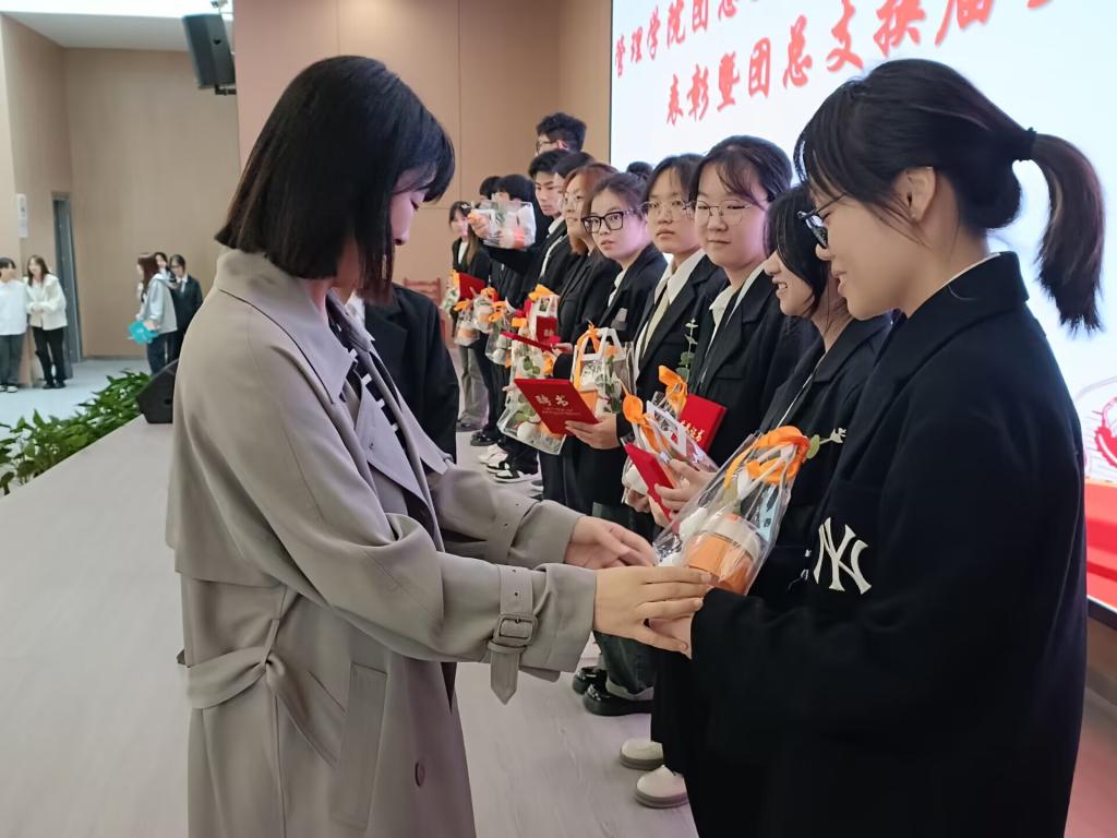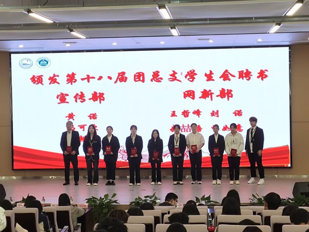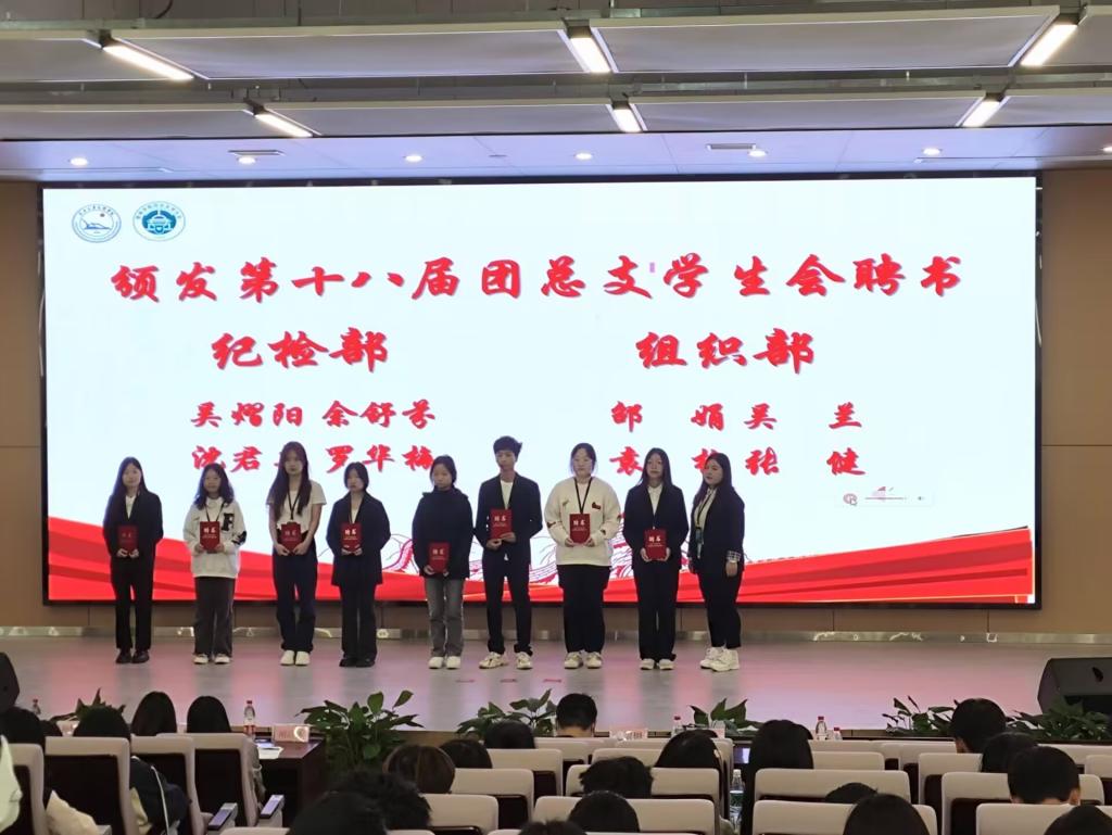 本次大会先由第十八届团总支员工会副书记刘洁发言。她向在场人员简要汇报了过去一年员工会的工作,并送给了大家一句话“长风破浪会有时,直挂云帆济沧海”。接着,颁发聘书,一纸聘书,承载着对成员们工作的肯定。接着,由十八届团总支员工会主席周铃子发言,她希望新一届员工会成员能携手合作,让员工会可以做的更好。