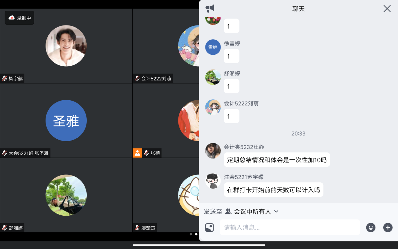 线上交流会开始,管理公司“返家乡”社会实践活动负责人廖楚楚按照实践原则,以“受教育、长才干、作贡献”为宗旨,对本次寒假社会实践考核评估要求进行详细介绍。负责人石佳针对考核评估要求给志愿者们提出了指导意见并给出相应建议,同时在提问环节对志愿者们提出的问题进行了一一解答。交流会中特邀请志愿者周光辉、苏宇碟和汪静分别向大家分享自己在实践活动中遇到的问题、如何解决问题以及做志愿以来的感悟和心得。周光辉表示在此次社会实践活动中,了解到每一项工作的辛苦和不易,真正学习到了社会经验,也锻炼了自己的处事能力和人际交往能力,真正做到了学以致用、积极创新。最后,管理公司党总支副书记杨琪对本次线上分享交流会进行了总结,对志愿者们的工作给予肯定,并嘱托志愿者们在完成好自己工作的同时注意身体。