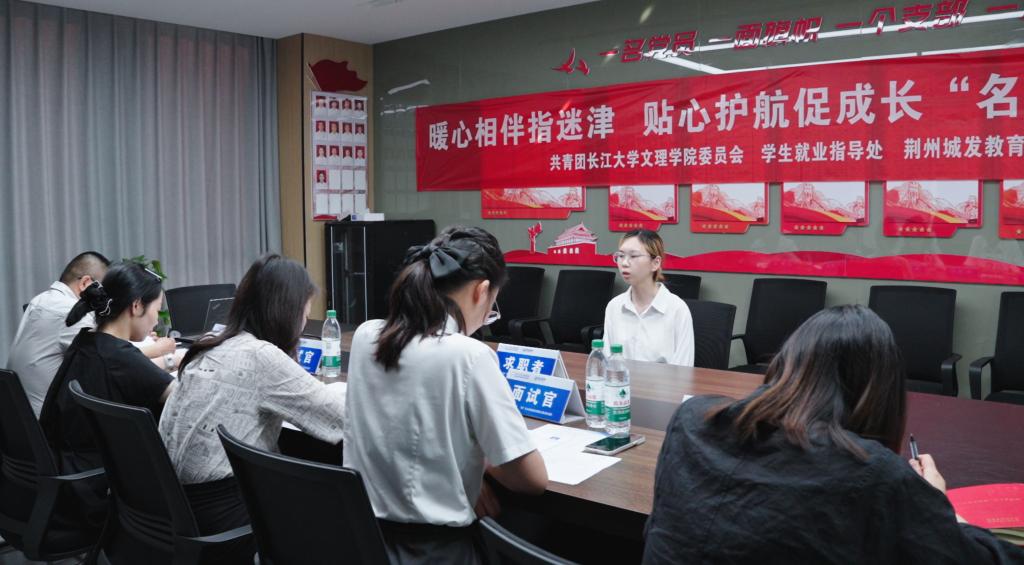 在荆州城发物业管理有限公司的会议室里,拥有十年工作经验的HR刘曼为参赛选手开展了应聘技巧培训,刘曼着眼专业人力资源工作,从真实职场角度出发,为同学们详细讲解了包括简历投递、面试穿着仪容、应答原则等求职技巧。