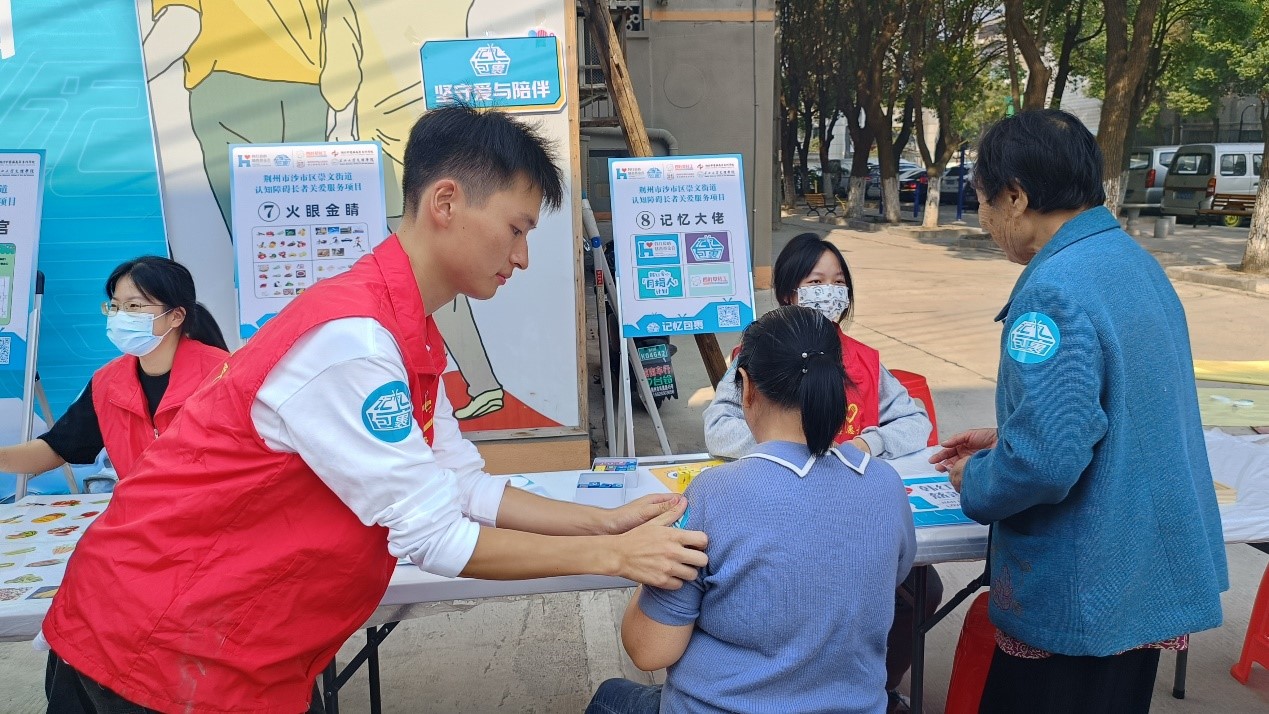 “这里是干什么的?”“这里怎么这么多人?”“小同志们,你们是从哪儿来的?”面对老爷爷老奶奶们的提问,志愿者们耐心的为老人讲解认知筛查的流程,他们的脸上写满关爱和认真,他们用实际行动诠释了志愿服务精神。带动老人们参与知识科普、认知筛查、八段锦、记忆特工等活动,调动他们的情绪,丰富他们对认知障碍的了解。