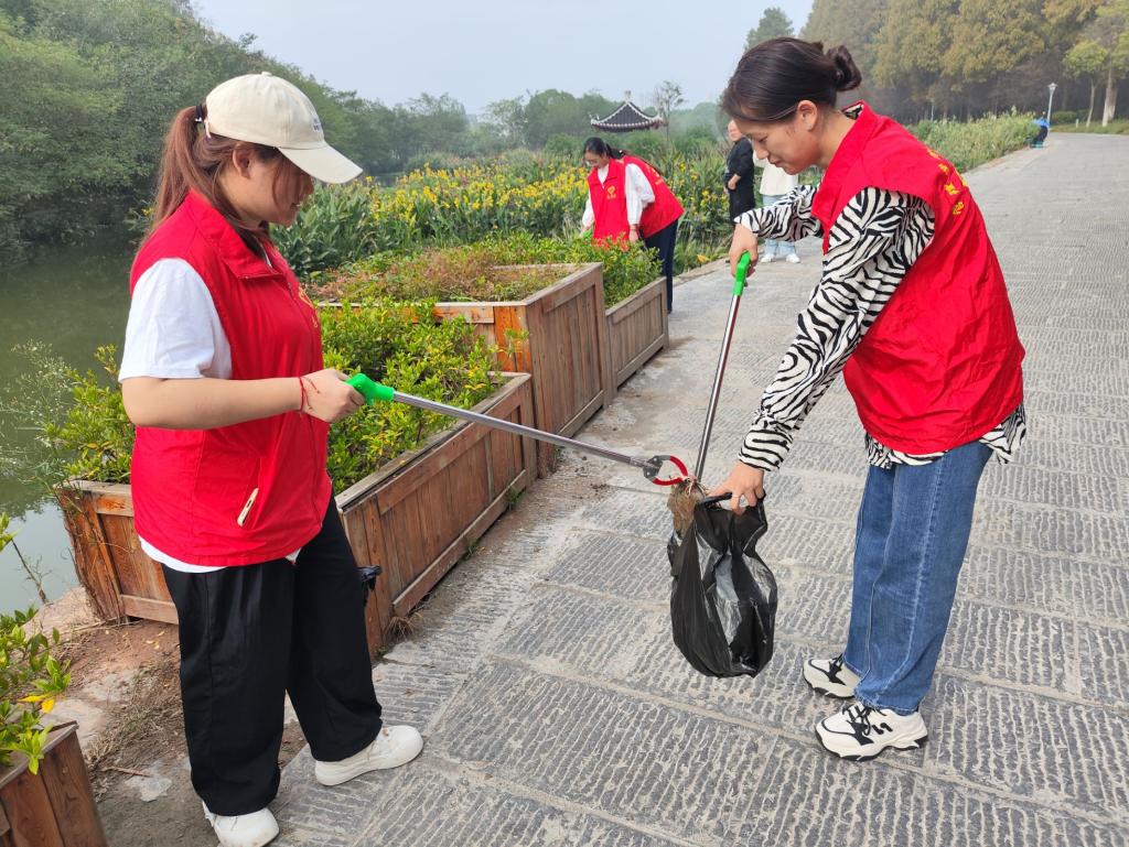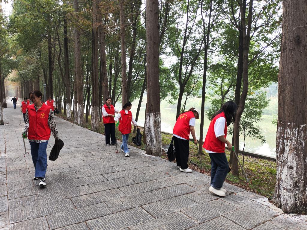 志愿者们发挥带头作用,手持铁夹和垃圾袋等工具,沿着三国公园进行垃圾清理,大家分工明确,有专门负责水面漂浮物打捞的,有专注于岸边垃圾捡拾的,有将路道两旁的烟头、纸屑等垃圾夹到垃圾袋里的,还有负责分类回收的,大家默契配合,确保路边干净整洁,极大地提升了工作效率。清扫结束后,志愿者们看着两边的道路焕然一新,脸上洋溢出了成就感和满足感。这一活动深深触动了路人,他们纷纷从“旁观者”转变为“参与者”。