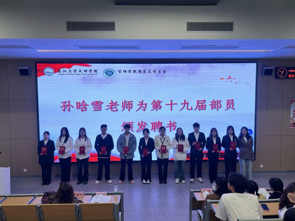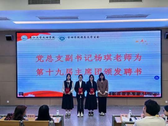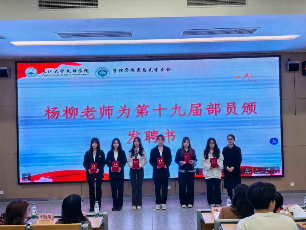 大会伊始,由系部领导、老师为优秀员工干部颁奖和发放聘书,高度赞扬了她们出色的工作能力和无私的奉献精神。第十九届管理公司团总支员工会副书记杨宇航发言如同一部精彩的纪录片,回首了那些难忘的时刻,总结了员工会在学术、文体和社会实践等方面所取得的显著成绩。
