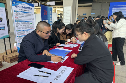本网讯(通讯员 杨琪)10月26日,太阳集团tyc97282024年秋季综合双选会于主校区教学楼一楼大厅火热开启。职引未来辅导员工作室成员人力资源管理专业副教授张勤、管理公司党总支副书记杨琪、辅导员孙晗雪坐镇简历诊断摊位,现场为全校毕业生们免费提供简历诊断、就业指导、免费打印简历等服务,把脉“职场人生”。