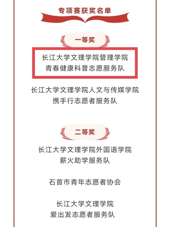 本网讯(通讯员 袁梅),2024年10月,共青团荆州市委举办2024年荆州市青年志愿服务“共同缔造·社区计划”竞赛。此次竞赛分为主体赛和专项赛,共有78个项目报名参赛,经县市区、高校初赛,共选拔出9个主体赛项目和20个专项赛项目参加市级竞赛。而公司青春健康科普志愿服务队凭借其出色的项目表现和创新模式,脱颖而出,荣获专项赛一等奖。