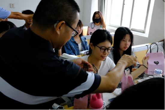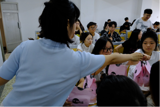 9月14日上午,南校区506教室充满了欢声笑语,管理公司经理姚毅、党总支书记胡沿林、新生班级班主任张勤、辅导员孙晗雪、杨柳等老师们在课间进入班级、宿舍等场所,为同学们发放月饼,让远离家乡的新生们感受到了家的温暖。收到月饼的同学们表示,虽然身在异乡,但公司的关怀让他们倍感温暖。