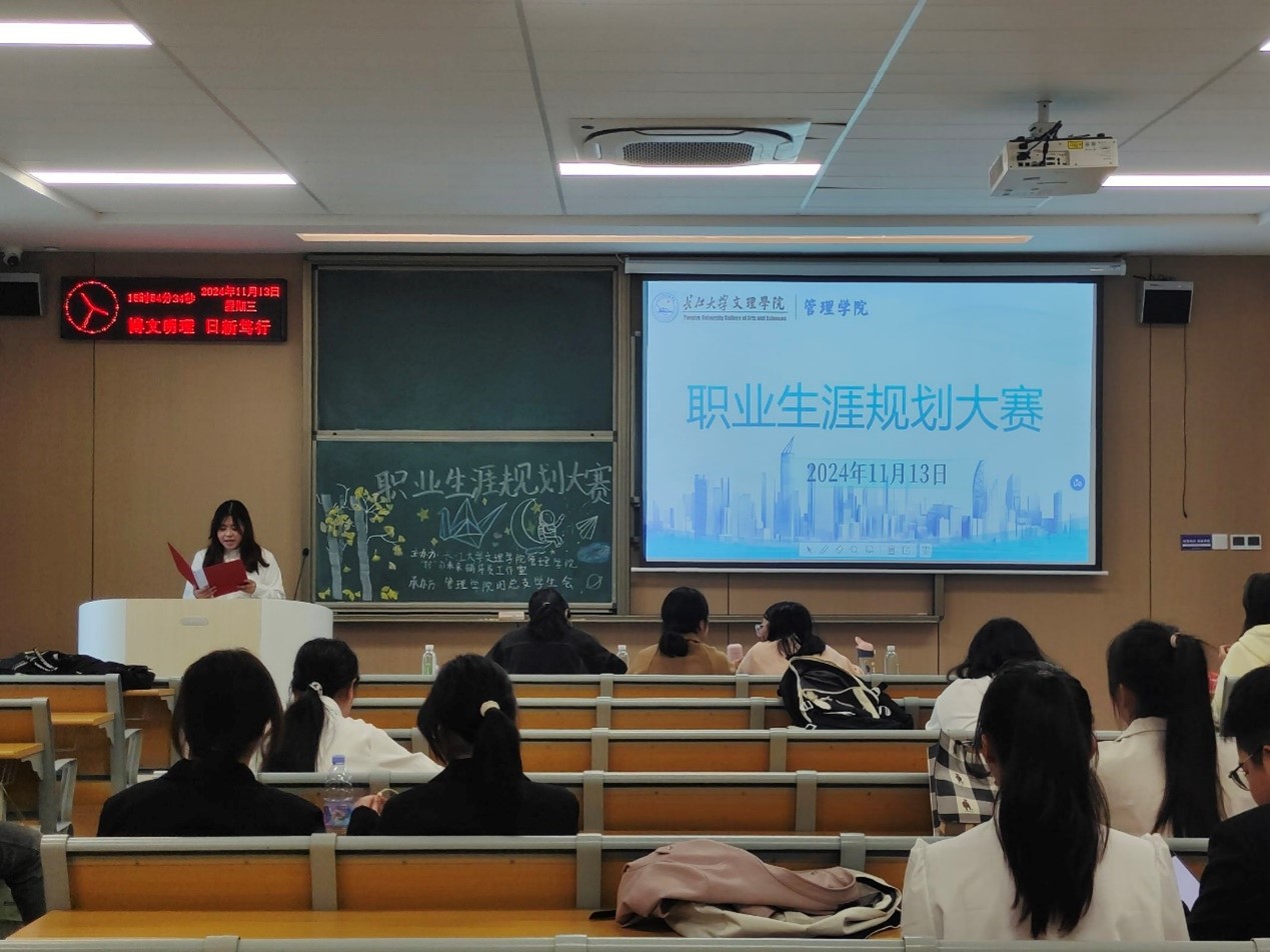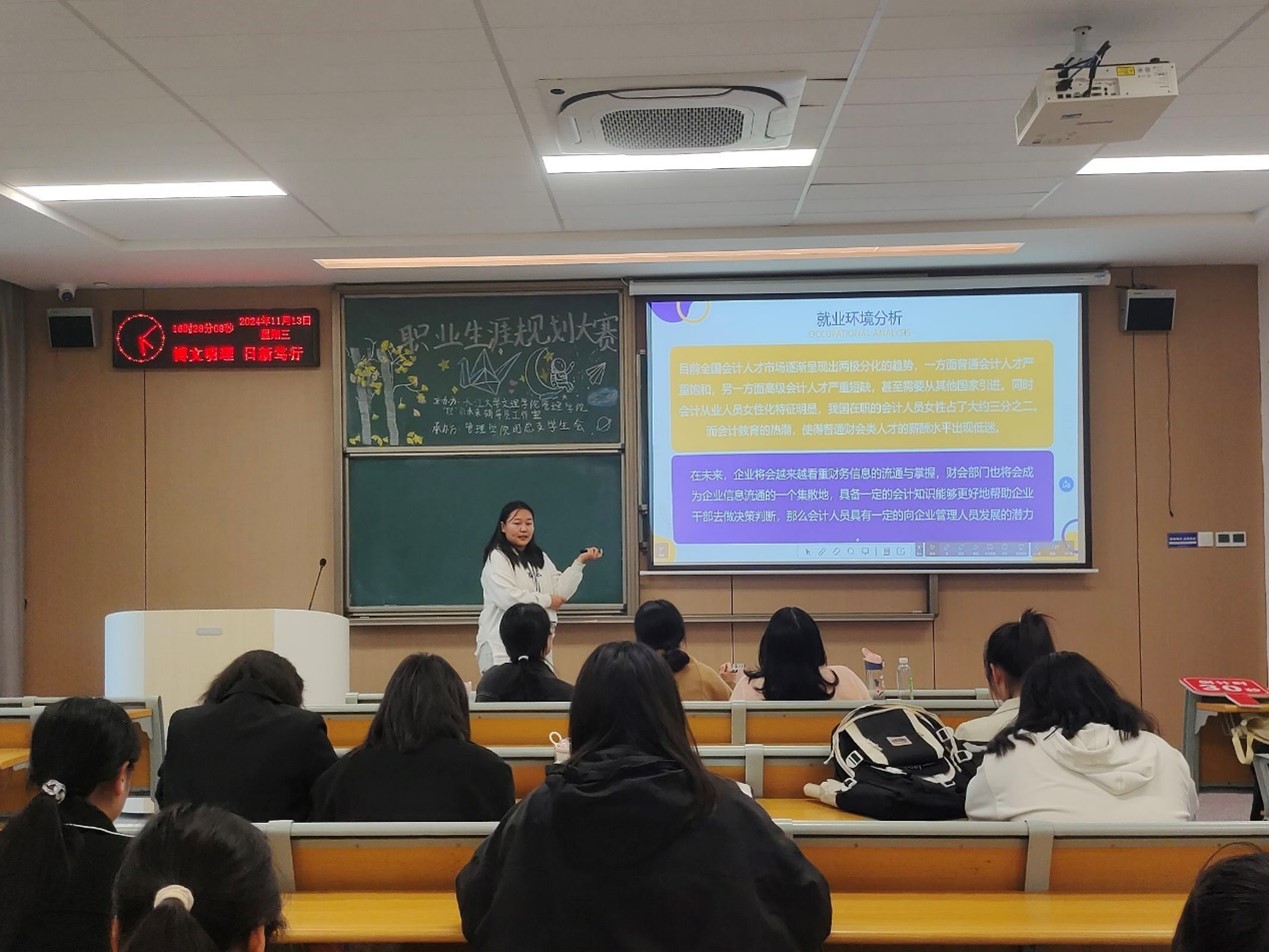 比赛采取线下PPT展示与答辩相结合的形式。选手们依次登台,对个人职业目标、发展路径以及实施计划进行了详尽阐述。他们所涉猎的职业领域广泛且各具特色,金融、教育、市场营销、人力资源管理等热门行业均有涉及,充分彰显出管理公司学子多元化的兴趣爱好和广阔的职业视野。