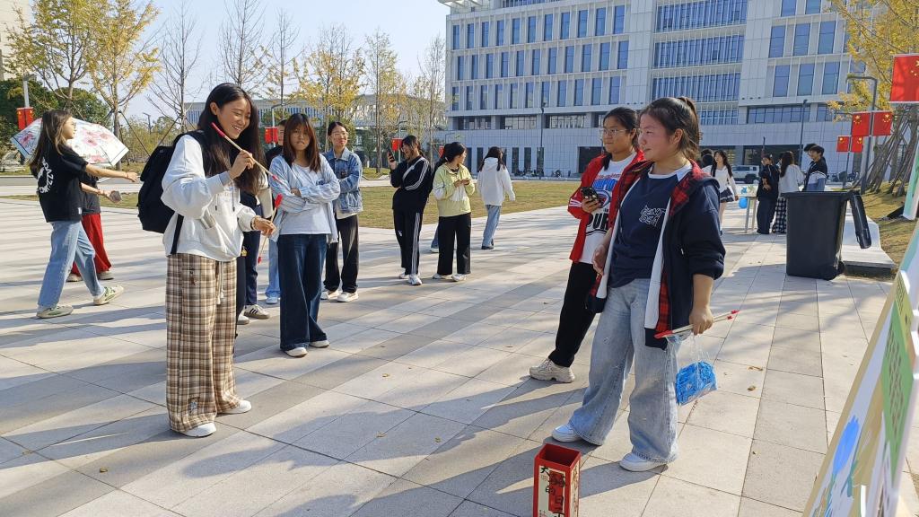 (图为工作人员为同学们讲解活动规则)