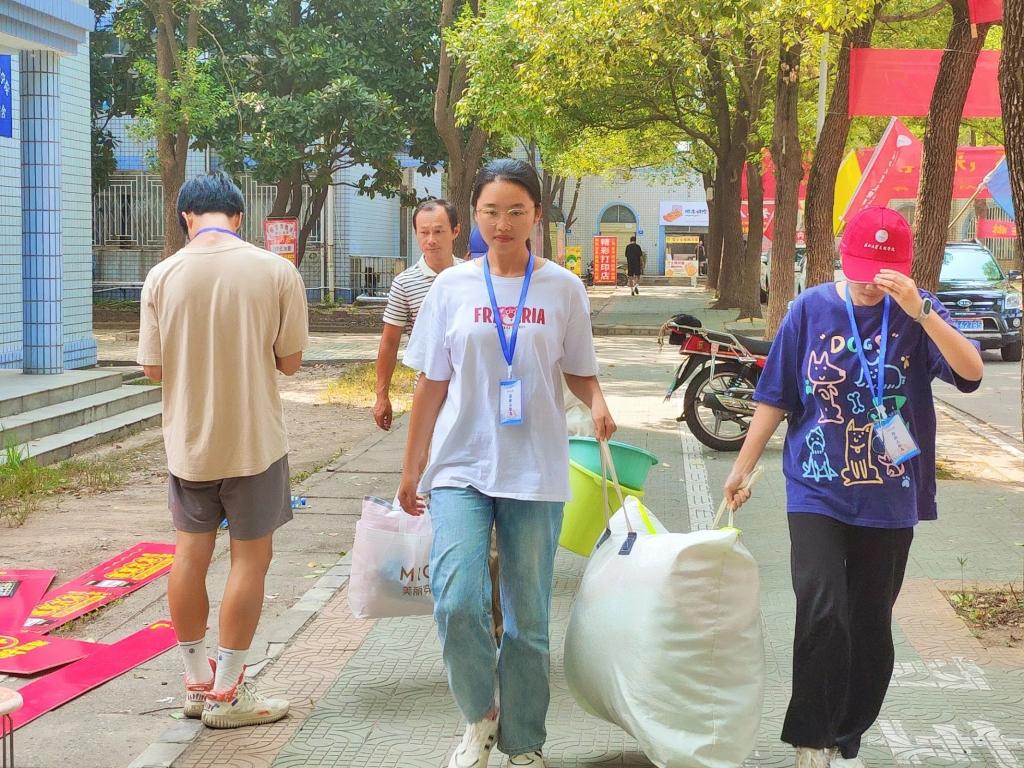 管理公司搬运行李的志愿者们整装待发,面带微笑,热情的接待每一位新生。他们用自己的热情,将每位新生的行李“洗劫一空”。青春是他们的代名词,汗水是他们认真的痕迹。迎新志愿者们努力的搬运行李让新生更安心的走向这暂时陌生的校园。他们尽力去帮助每一位萌新,让他们感受到来自公司的温情。