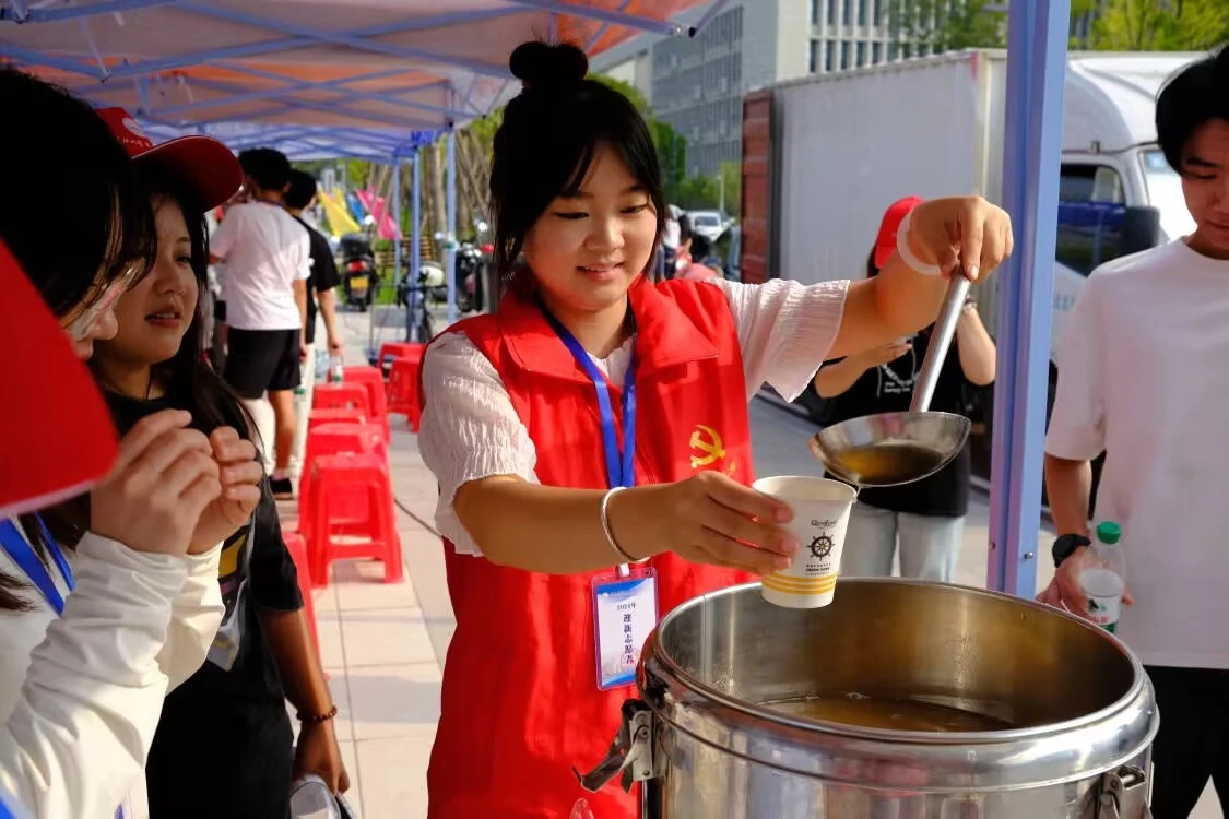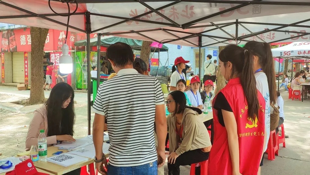 迎新志愿者们的细心与周到让新生们在这个陌生的环境中感受到了家的温暖。同时,管理公司还准备了绿豆汤和西瓜,由迎新志愿者们亲手端给在休息区的家长们,解暑又温暖。