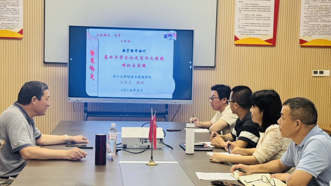 在管理公司会议室,汪发元教授以《数字经济时代高水平学术论文写作及投稿理论与实践》为题,紧扣数字经济时代脉搏,系统剖析了当下学术论文的独特特点,从学术论文的选题与准备、整体框架搭建,到具体写作规范与技巧,进行了全方位、多层次的讲解。