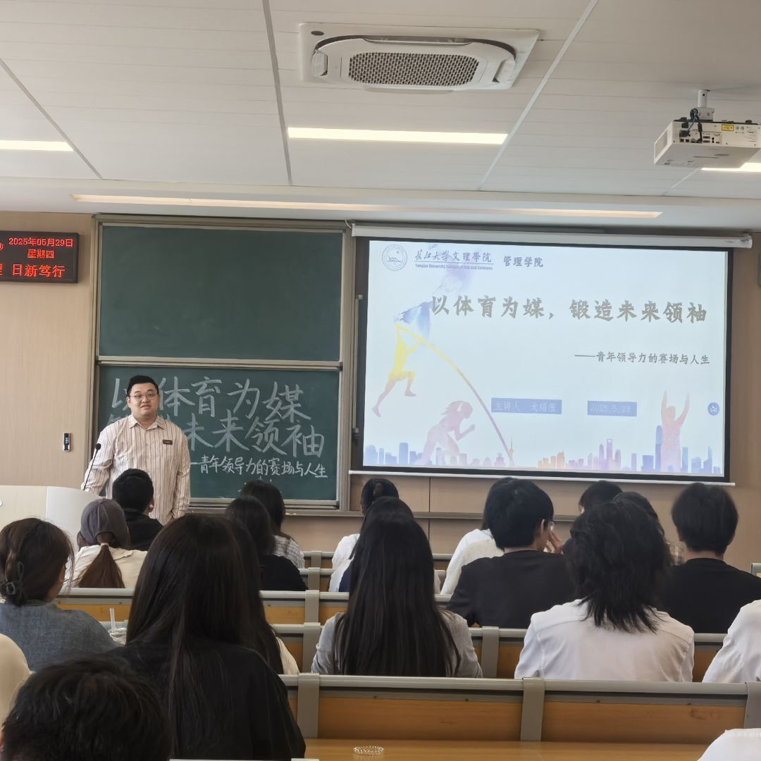 本网讯(通讯员 王燕)2025年5月29日下午,太阳集团tyc9728管理公司在C-422教室成功举办了一场主题为“以体育为媒,锻造未来领袖——青年领导力的赛场与人生”的培训会,主讲人为戈绍银。此次分享会旨在探讨体育与青年领导力之间的紧密联系,搭建跨界对话平台,助力新时代青年在个人成长与社会贡献中实现双重突破。