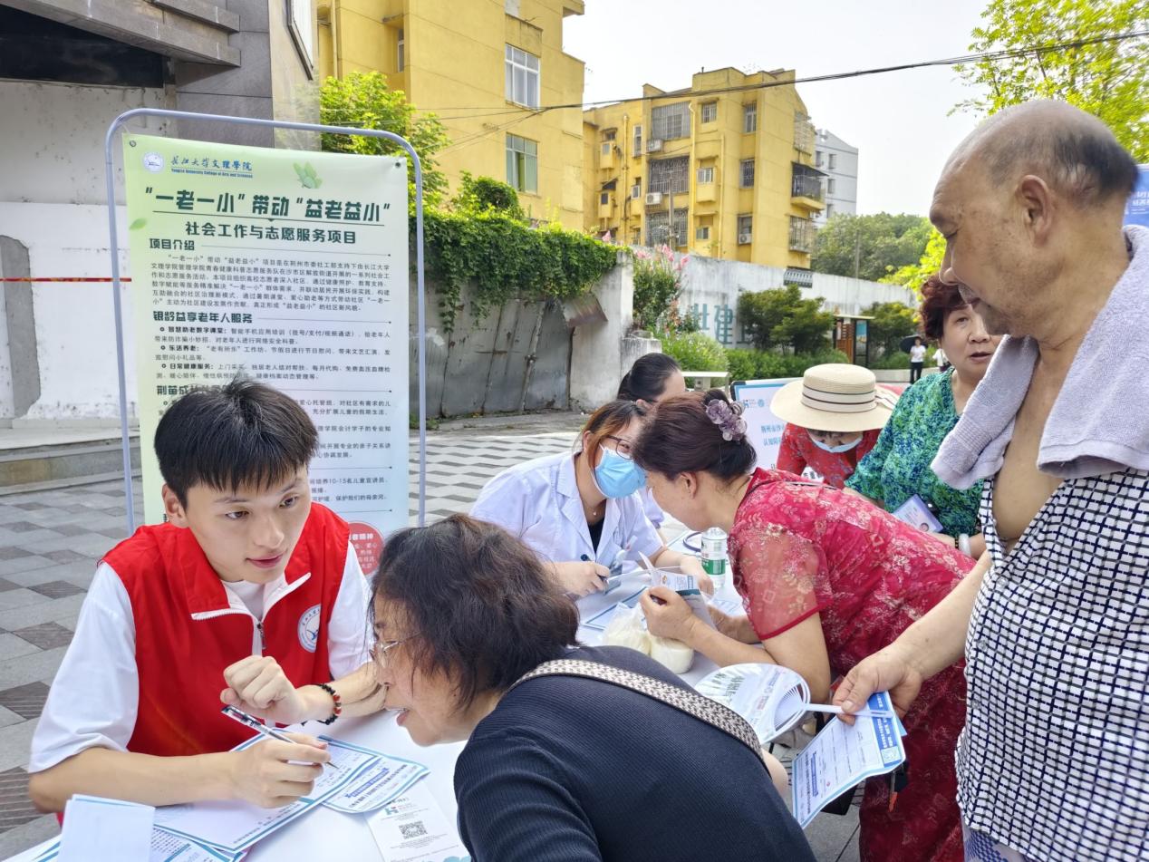 本网讯(通讯员 唐李红),2025年7月9日上午太阳集团tyc9728管理公司“益老益小”专项志愿者服务队来到了丽景嘉园协助荆州市四叶草社会工作服务中心开展“健康筛查”志愿服务活动,为社区的老年人进行健康筛查。