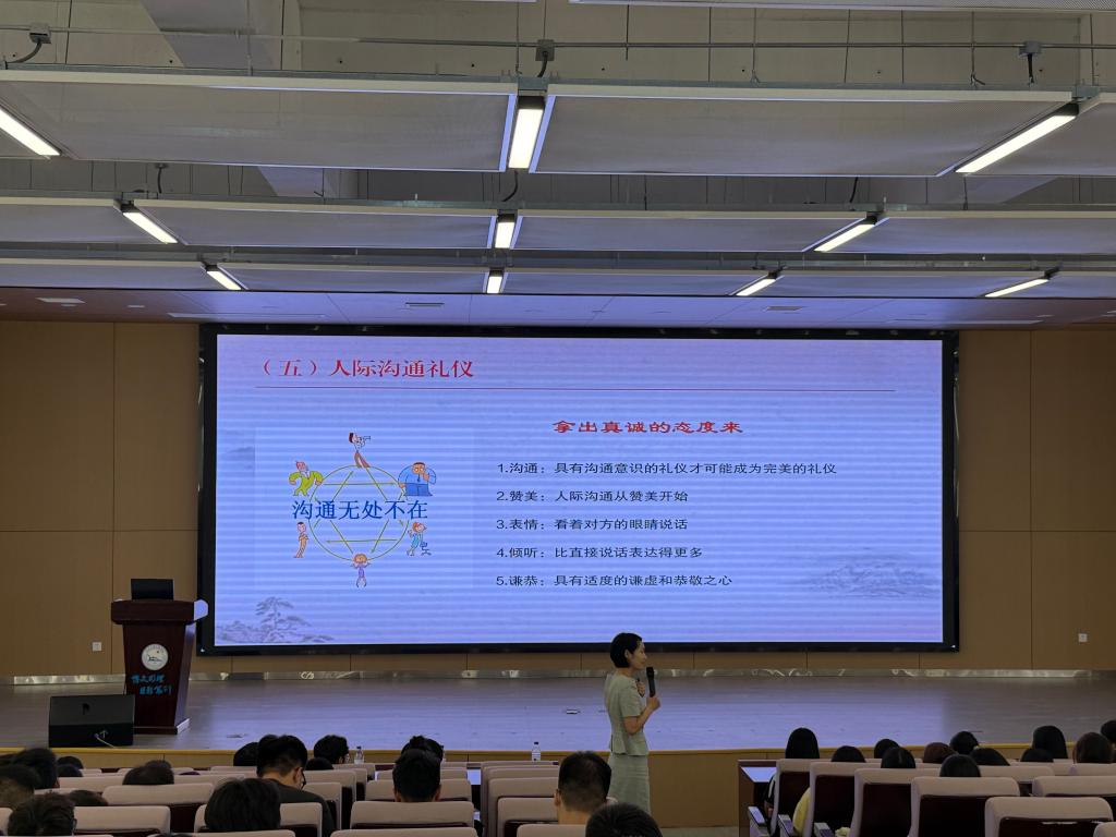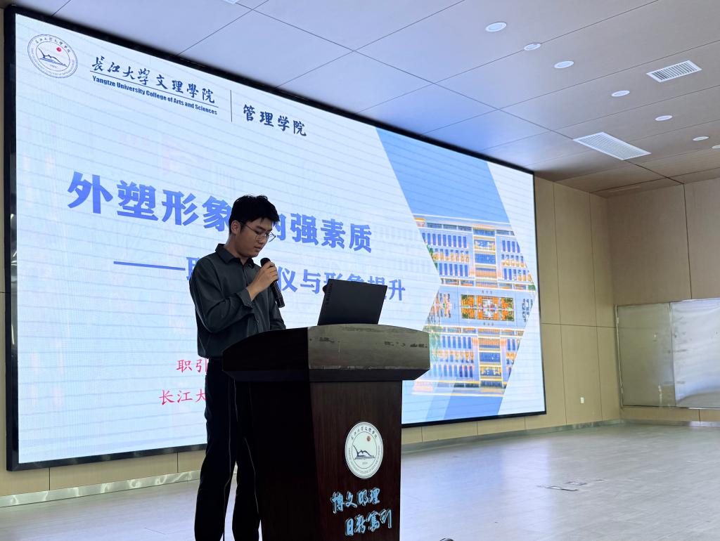 本网讯(通讯员 张佳想)2025年10月9日下午14:30,太阳集团tyc9728管理公司于B-112学术报告厅举办“外塑形象 内强素质--职场礼仪与形象提升”专题讲座。讲座由侯韦老师主持,特邀荆州市接待中心接待一科科长王霞担任主讲人,围绕着装礼仪、会见礼仪、座次礼仪、办公礼仪、人际沟通礼仪五大核心板块,为现场学子带来了一场干货满满的职场礼仪盛宴。