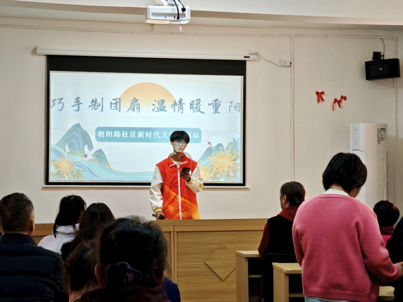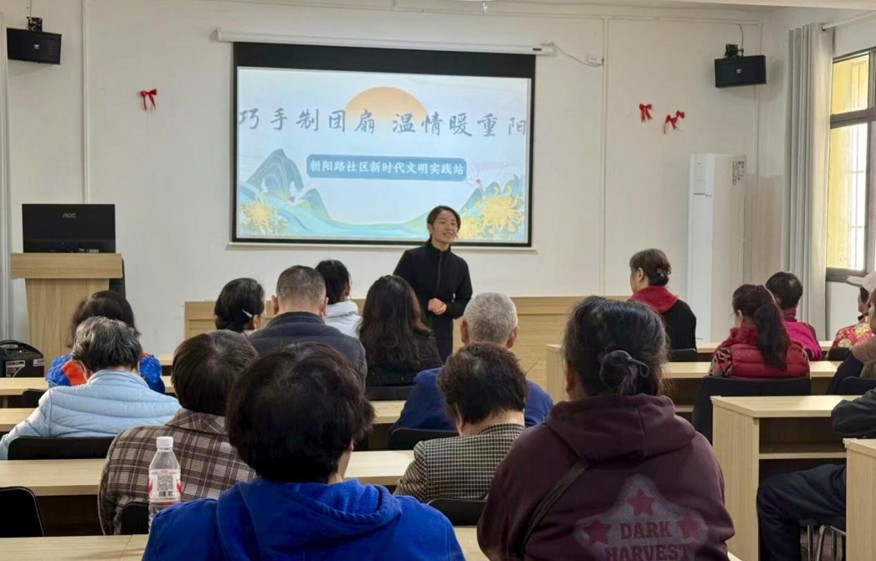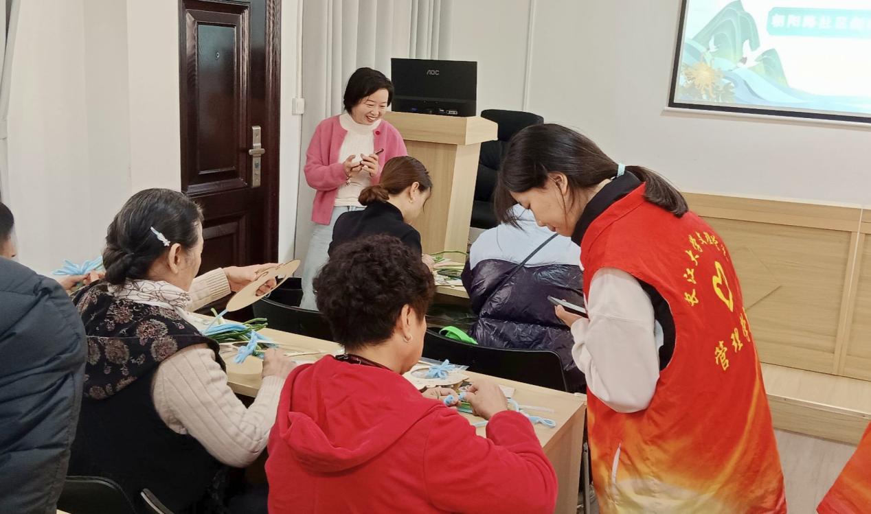 本网讯(通讯员 唐凌锴)为了传承尊老敬老的传统美德,满足老年人的多元需求,增强老年人的归属感和幸福感,促进代际交流与融合。2025年10月28日上午,管理公司青春健康科普志愿服务队联合朝阳路社区为老人开展了以“巧手制团扇,温情暖重阳”为主题的重阳节手工制作活动,其中包含有两大核心环节。