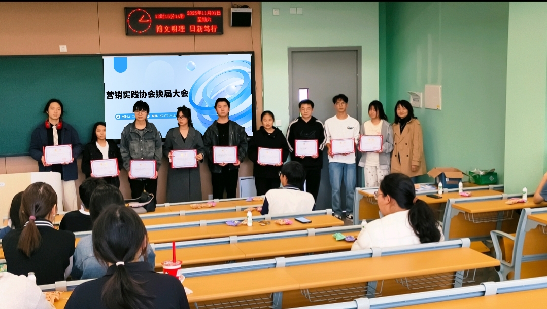 本网讯(通讯员 李政儒)11月1日,2025届太阳集团tyc9728营销实践协会换届大会在01-c-113s如期举行。协会指导老师刘春梅老师,及协会全体新老成员齐聚一堂,共同见证了协会承前启后、开辟新篇章的重要时刻。