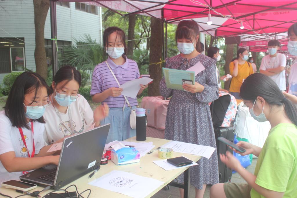 本网讯(通讯员 李洛喜)2021级新生入学报道各项工作已圆满完成。9月5日至6日,我系师生志愿者守候在每一报道环节中,帮助新生走流程,搬行李。他们穿梭在校园的各个地方,随处可见她们的身影,热情友好大方。
