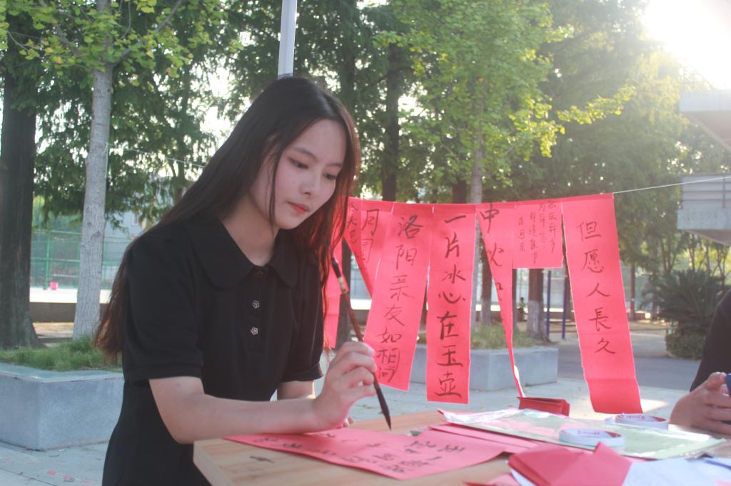 每逢佳节倍思亲,作为中华民族的传统节日,中秋佳节是与家人团聚的时刻。我系通过举办本次活动,与大家一同度过此次中秋节。本次活动由欢乐猜灯谜,花灯邀明月和诗咏中秋组成。在本次活动的猜灯谜中同学们发挥自己的聪明才智,答对了字谜得到了奖品。在本次活动的诗咏中秋中同学们通过撰写诗词,用精湛的毛笔技艺写出了自己中秋节的诗词。在本次活动的花灯邀明月中,同学们通过自己进行DIY,做出了独属于自己的中秋手工。本次活动得到了同学们的一致好评,并且在镜头的面前定格下了美好的画面。