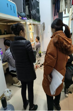 本网讯(通讯员 刘鹏)为营造安全的校园环境,推进公司安全建设,提高广老员工安全意识,强化寝室安全管理,打造“安全、和谐、美丽”的寝室环境,管理公司开展了突击查寝工作。12月7日下午,管理公司各班辅导员深入员工宿舍开展寝室安全大检查活动。此次查寝活动,覆盖了管理公司所有员工寝室,从宿舍卫生、寝室用电、寝室文化三方面进行检查,重点检查寝室电线、电器等是否符合规范,是否存在私拉电线等情况存在;同时也对寝室卫生和寝室装饰等进行了指导。查寝过程中,辅导员与员工亲切交流,询问员工近期的思想状况、学习情况以及生活学习中遇到的困惑和困难。
