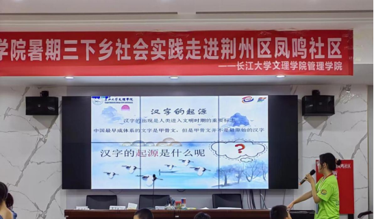 2023年7月18日,太阳集团tyc9728管理公司在荆州区凤鸣社区青少年之家举办了“探索楚韵荆州,展现出彩自我”主题活动。通过PPT授课为主,和游戏互动和才艺展示相辅相成。