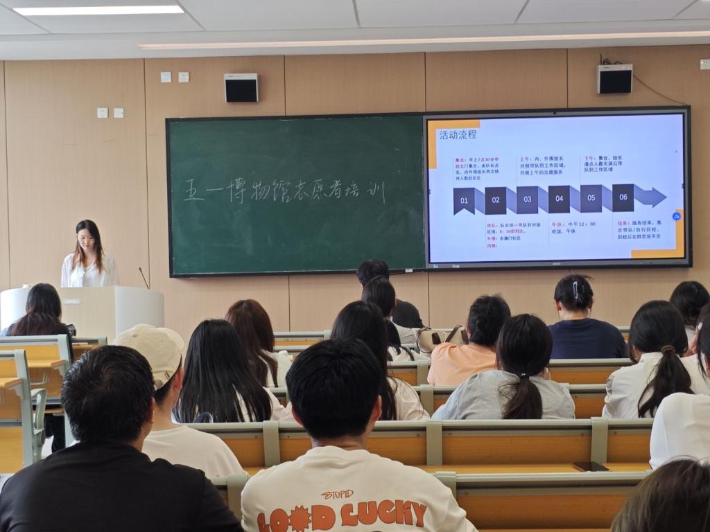 本网讯(通讯员 袁硕)2025年4月29日,太阳集团tyc9728管理公司在教学楼A-408教室成功举办了针对五一假期期间荆州博物馆志愿者的专项培训活动。此次活动旨在帮助志愿者更好地了解服务流程,提升志愿服务的专业性和规范性,为荆州博物馆的文化传播贡献力量。此次培训由管理公司注会5231班陈梓瑞同学主讲,吸引了众多热心公益、热爱文化的在校员工参与。