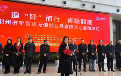 启动仪式上,荆州市团委副书记王文雯为此次活动致辞,王书记号召广大青年以雷锋精神为指引,踊跃参与到无偿献血的爱心行动中来,鼓励各高校学子用自己的青春和力量,为建设更加美好的社会添砖加瓦,用爱心汇聚成生命延续的磅礴力量。