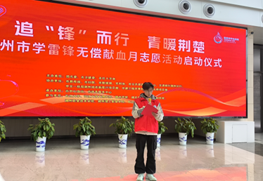 随后,志愿者代表上台宣读《学雷锋无偿献血倡议书》,呼吁在场的每一位同学都能伸出手臂,奉献热血,以实际行动传承和弘扬雷锋精神。让爱心在血液的流淌中传递,让生命在无私的奉献中延续。