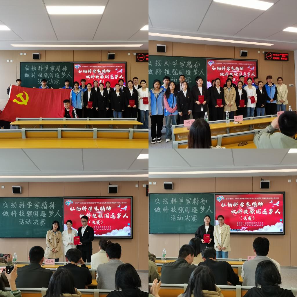 本网讯(通讯员 王彦郦)管理公司员工党支部于4月27日下午14:00,在01-A-408S开展“弘扬科学家精神,做科技强国逐梦人”科普知识—微党课活动决赛,管理公司员工党支部全体党员、积极分子共同参加。管理公司党总支书记胡沿林老师、管理公司党总支副书记杨琪老师、管理公司辅导员孙晗雪老师出席本次活动。此次活动的主要目的是,鼓励青年牢固树立创新科技、服务国家、造福人民的思想,继承中华民族“先天下之忧而忧,后天下之乐而乐”的传统美德,传承老一代科学家爱国奉献、淡泊名利的优良品质,立志于把科学论文写在祖国大地上,把科技成果应用在实现国家现代化的伟大事业中,把人生理想融入为实现中华民族伟大复兴的中国梦的奋斗中。