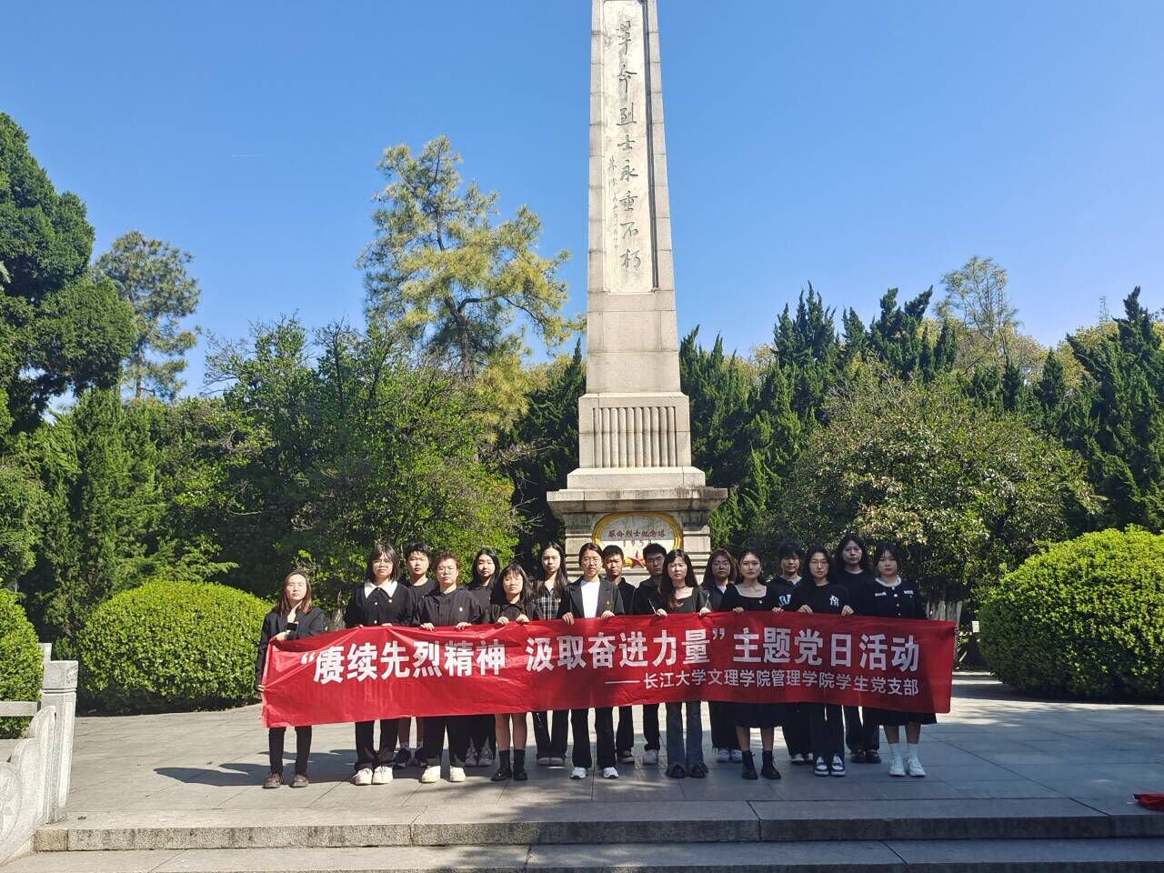 习近平总书记强调:“一个有希望的民族不能没有英雄,一个有前途的国家不能没有先锋。”英雄烈士是民族的脊梁、时代的先锋,英烈事迹和精神是中华民族的共同历史记忆和宝贵精神财富。这次清明祭扫活动,使党员同志们懂得珍惜生活、心存感恩。在未来,支部成员将以更严谨治学的态度,发奋学习的精神,大胆创新的意识肩负起时代赋予我们的重任,让红色基因代代相传。