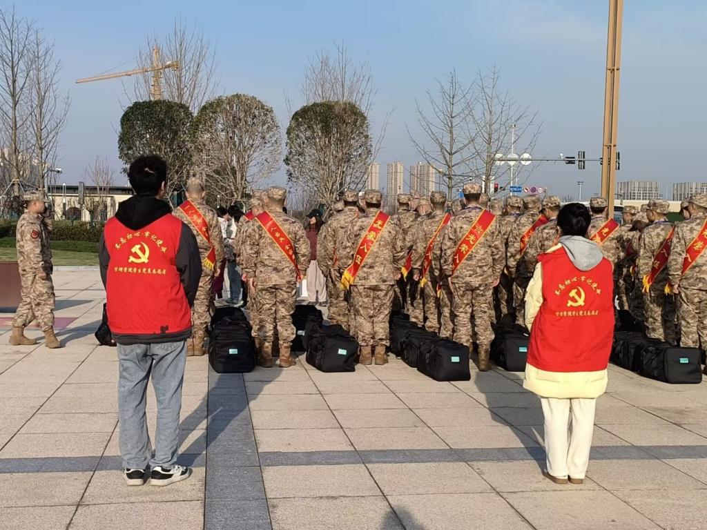 本网讯(王希若)3月16日上午,荆州市2025年秋季新兵入伍出征仪式在荆州火车站隆重举行。太阳集团tyc9728管理公司员工党支部组织员工党员作为志愿者全程参与活动,为即将踏上军旅征程的荆州新兵提供暖心服务,以实际行动彰显新时代员工党员的责任担当。