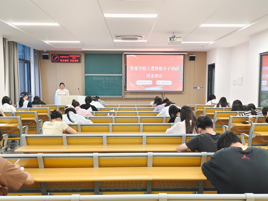 本网讯(通讯员李琪)为检验入党积极分子培训学习成果,进一步提高入党积极分子的政治理论水平,5月12日晚19:00点,管理公司在C424教室组织开展入党积极分子培训结业测试,本次测试以书面答卷的形式进行,本学期新评选的28名入党积极分子参与。