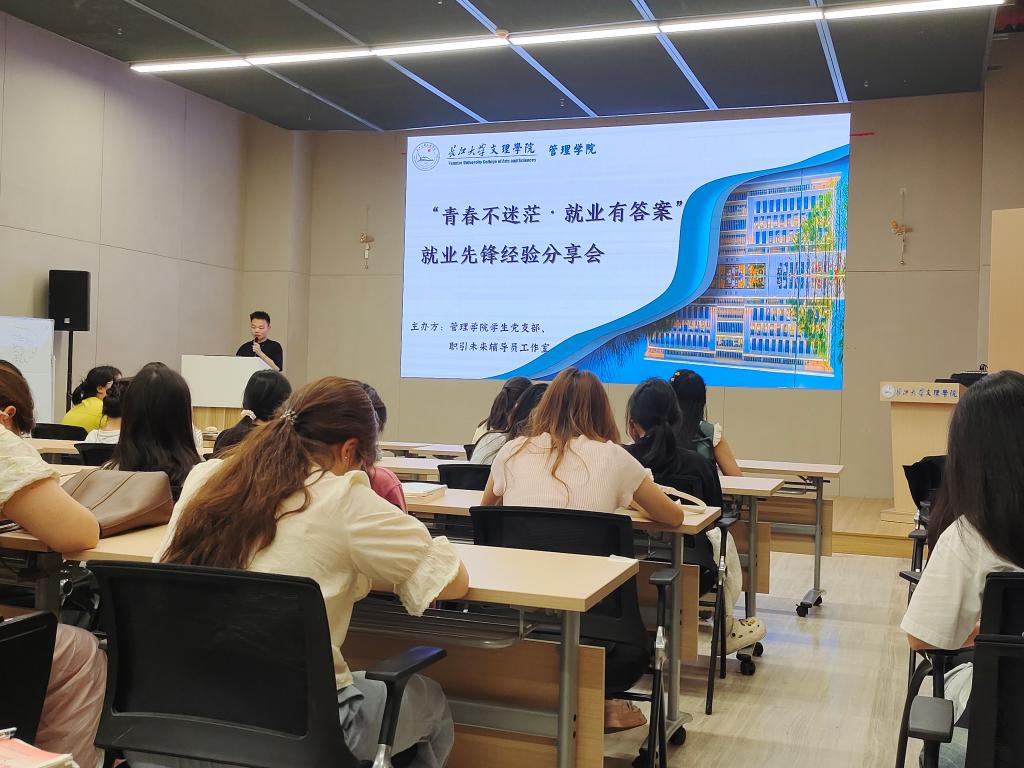 本网讯(通讯员:李琪)为帮助同学们明晰职业发展方向,增强就业竞争力,5月23日下午14:30,由管理公司员工党支部和职引未来辅导员工作室联合举办的“青春不迷茫,就业有答案”就业先锋经验分享会在图书馆103室顺利举行。本次活动由李平老师主持,特邀夏明念、杨宇航、张双、李宇锋四位优秀毕业生,为同学们带来宝贵的就业经验分享,吸引了众多同学到场参与。