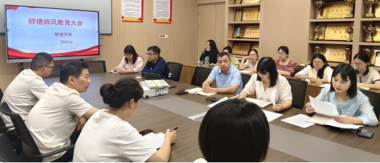 随后,在师德师风建设专题会议上,经理姚毅带领全体教职工集中深入学习弘扬教育家精神培育新时代大国良师;高校教师师德失范行为典型案例(5例)等内容。姚经理强调高校教师应秉持“言为士则、行为世范”的道德情操,以身作则,为员工树立良好榜样。严格遵守教师职业道德规范,坚决抵制学术不端行为,维护教育公平和学术诚信。积极参与师德师风建设活动,通过培训、研讨等形式,不断提升自身的师德修养。