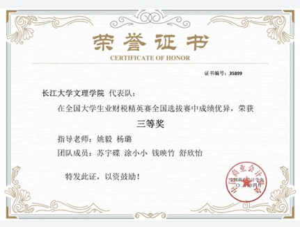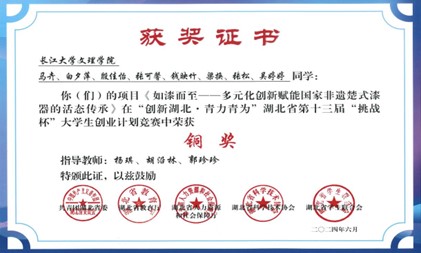 日常生活中,她积极参与科创类及文体类活动,荣获2024全国老员工电子商务挑战赛省赛一等奖,湖北省第十三届挑战杯大赛铜奖,湖北创青春大赛优秀奖等省市级荣誉七项。在校园五月风活动中,她积极参加各类演讲比赛,作为一名新时代青年,不断弘扬伟大时代精神。