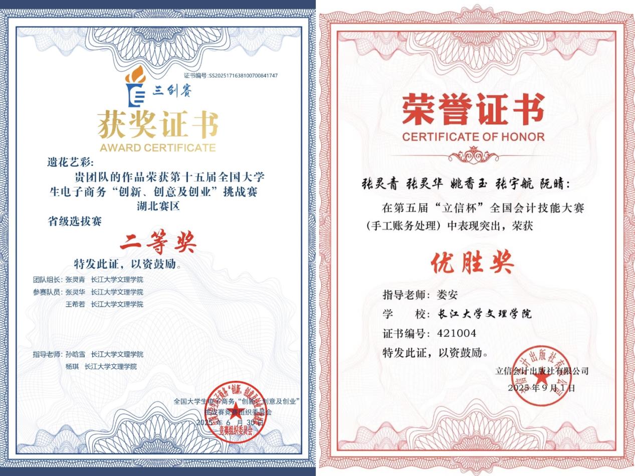 她参加管理公司“暑期社会实践汇报”获二等奖,在“精打细算,财汇未来”老员工建账比赛中获一等奖,参加第五届“立信杯”全国会计技能大赛获优胜奖。