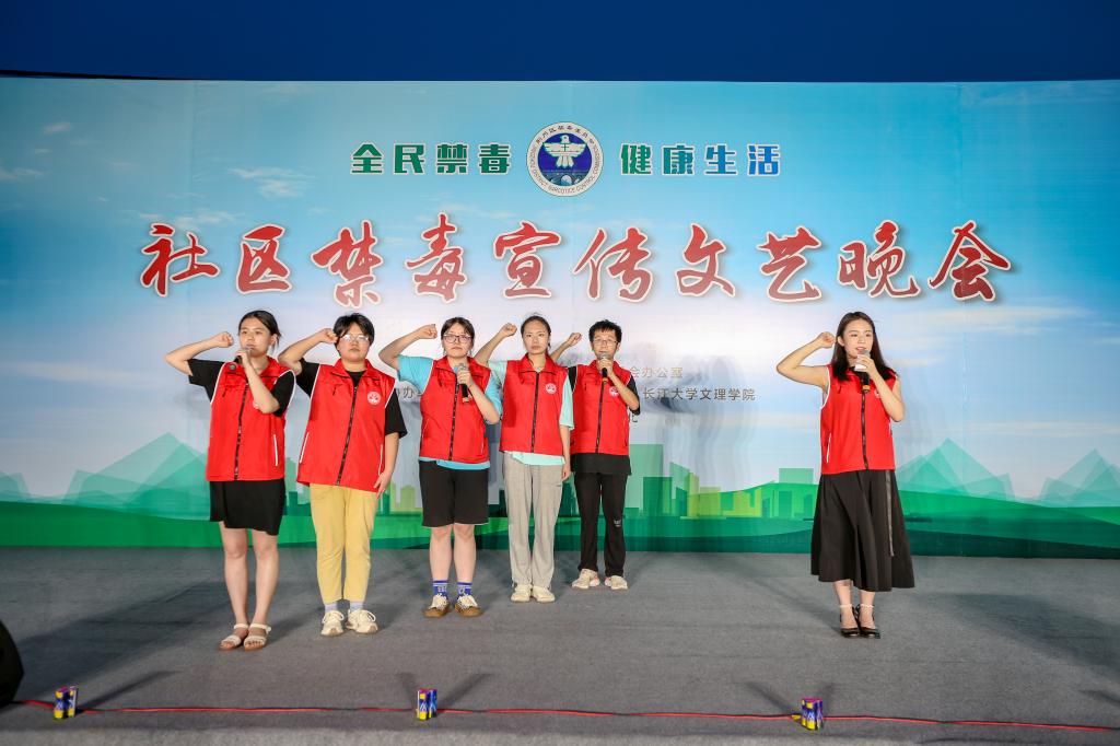 “从我做起,抵制毒品,我将履行禁毒誓言,为国家禁毒事业作出自己应有贡献!”在节目尾声,志愿们上台庄严宣誓,铮铮的誓言掷地有声,表达了拒绝毒品的决心和态度。