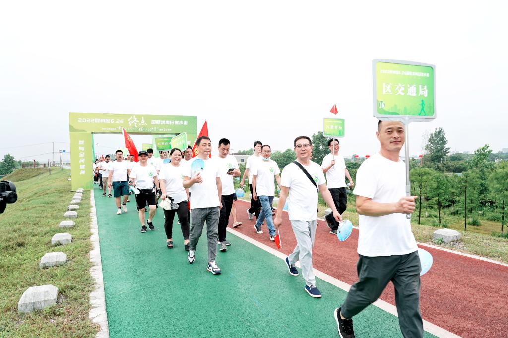 来自镇、街道、高校等单位共30支参赛队伍200人参加活动。“健康人生、绿色无毒,珍爱生命、远离毒品”高喊着口号,队员们身着统一白色T恤,精神饱满、步履整齐,向着目的地出发,活动以荆州区郢都南路与长江外堤交汇处为起点,经荆州区学堂洲临江健步走道,全程约7公里,营造了浓厚的禁毒宣传氛围。