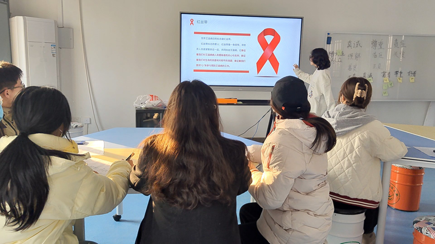 活动开始前,主持人先带领同学们开展了几个破冰小游戏,以此来缓和气氛,让同学们相互熟悉一些。教育正式开始,主持人为大家详细的介绍什么是艾滋病?艾滋病的传播途径以及如何正确看待艾滋病病人?引导同学们对艾滋病有一个全面的认识和较为深刻的了解。