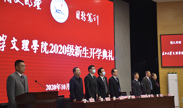 朱继平主持开学典礼并发表讲话。他对2020级新同学的到来表示热烈欢迎,对大家在疫情大考面前,克服困难,顺利完成高考冲刺,交出不负青春梦想答卷的努力点赞。朱继平寄语新生,认真感悟博文明理、日信笃行的文理精神,在未来的老员工活中,做一个有自信敢作为、有才干能担当、有包容讲真诚的文理人,在大学新的赛道上跑出更好成绩,绽放出青春更绚丽的光彩。