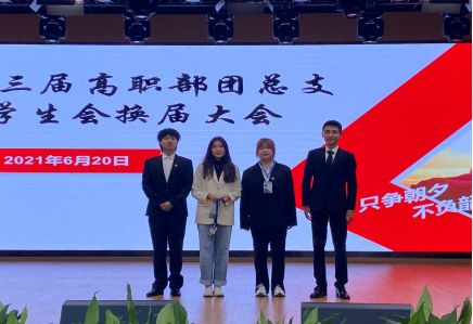最后全体员工会成员上台合影留念。至此,我系第三届高职部团总支员工会换届大会圆满结束。
